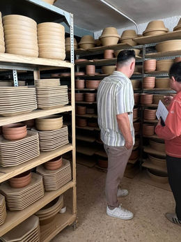 Nous visitons nous-mêmes ces ateliers et sélectionnons sur place les pièces que vous retrouvez dans notre collection. Pas de production de masse, mais un savoir-faire authentique avec de petites variations qui rendent chaque pièce unique.